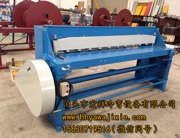 電動(dòng)剪板機(jī)采用抵抗鍵形式離合器結(jié)構(gòu)和開(kāi)式齒輪傳動(dòng),并采用較先進(jìn)電器(腳踏開(kāi)關(guān)、手動(dòng)開(kāi)關(guān))操作,噪音小操作維護(hù)方便。