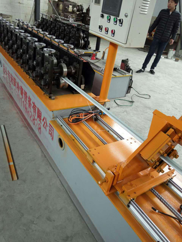 輕鋼龍骨機是以帶鋼為原料、通過連續(xù)冷軋成型,生產(chǎn)復雜的斷面型材(產(chǎn)品有:輕鋼龍骨、烤漆龍骨、卡式龍骨、各種建筑型材、鋼構、鋼襯門框型材、高速護攔等)和不同規(guī)格的冷彎、烤漆機組設備,采用PLC控制。